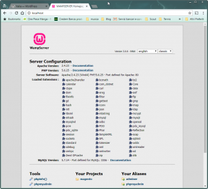 Innanzitutto hai bisogno di avere un Web Server sul computer personale. Esistono diversi prodotti gratuiti ed integrati adatti allo scopo. Quello che mi sento di consigliarti, e che utilizzo io stesso, è Wampserver se il tuo è un PC con Sistema Operativo Windows. Wampserver fa parte della categoria di applicazioni integrate WAMP (Windows Apache Mysql Php), ed una volta installato avrai il tuo ambiente di sviluppo/test già pronto e funzionante. Una volta terminata l’installazione, apri il browser e punta all’indirizzo http://localhost