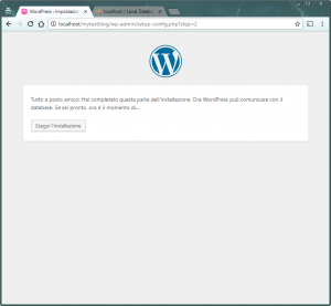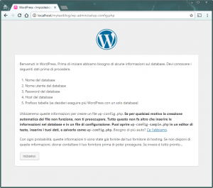 Adesso torna nella finestra di installazione di WordPress e clicca sul pulsante Iniziamo!
