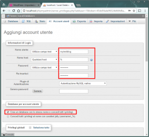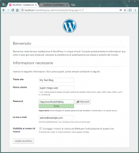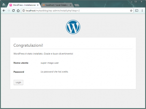 Segna in un posto sicuro il nome utente e la password inseriti ora… Ti serviranno tra poco per accedere al pannello amministrativo di WordPress.