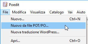 - Apri PoEdit e vai su File -> Nuovo da file POT/PO